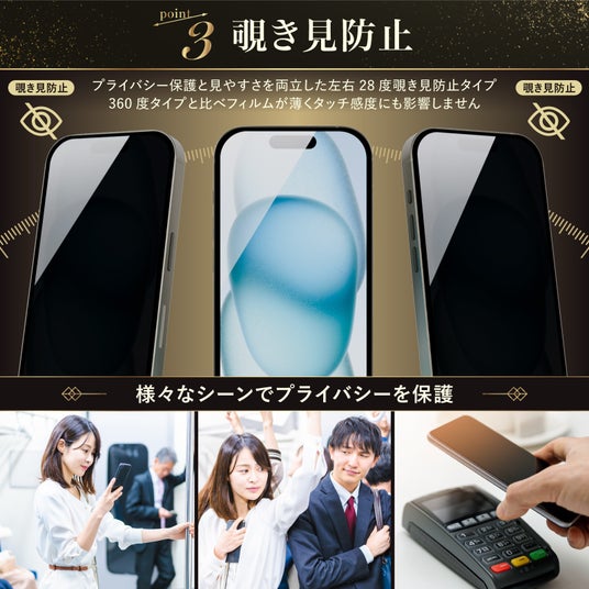 2025年発表のiPhone16e対応! 覗き見防止機能付き。左右28度の視線カットでプライバシーを守り、タッチ感度そのまま。簡単に貼れるガイド枠付き、耐衝撃10H。2枚セット&365日保証付き!