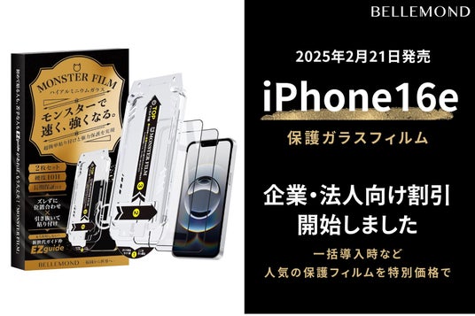 これを受け、FunStandard株式会社(本社所在地:福岡県大野城市)が運営するスマホアクセサリーブランド BELLEMOND(ベルモンド) は、 iPhone16e専用画面保護ガラスフィルム「モンスターフィルム」 の企業・法人向け割引サービスを開始しました。