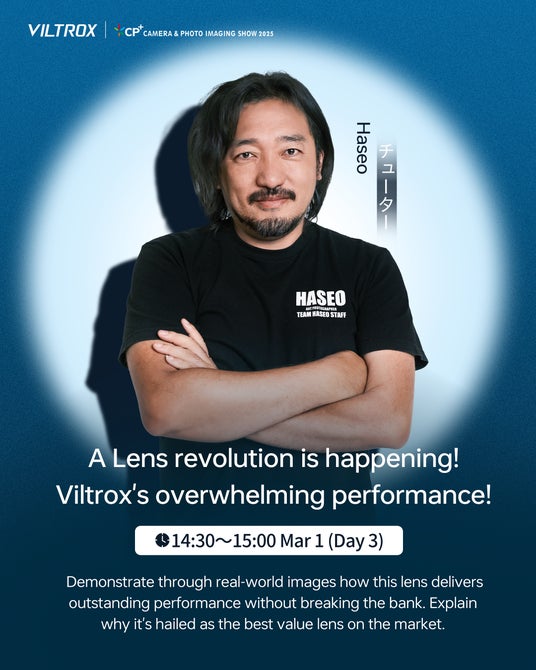 基調講演では、著名な受賞歴のある日本人写真家兼ビデオグラファーのHaseo氏が、写真家たちにインスピレーションとアドバイスを提供し、Viltroxレンズの利点について洞察を披露します。この特別なプレゼンテーションは、3月1日午後2時30分から午後3時まで、ホールD・ブース49で開催される予定です。