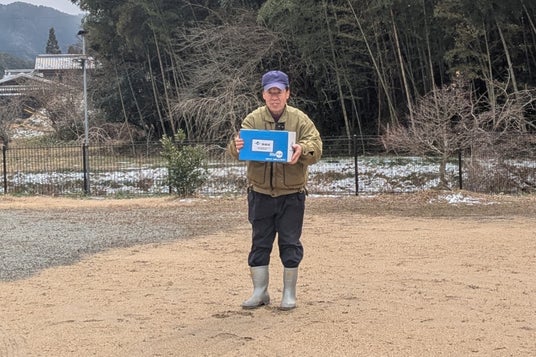 2月6日(木)の報道関係者への公開では、福栄コミュニティセンターから五名コミュニティセンターまで片道約7kmをドローンで配送。約17分で飛行し、五名地区の住民に荷物と医薬品(ダミー)をお届けしました。ドローンが空から降りて来て、届けられた荷物を受け取った住民の方は、「災害などが起こった際はドローンを利活用していただきたい。将来的にはもっと大きく重いものも運んでほしい」とコメントしています。