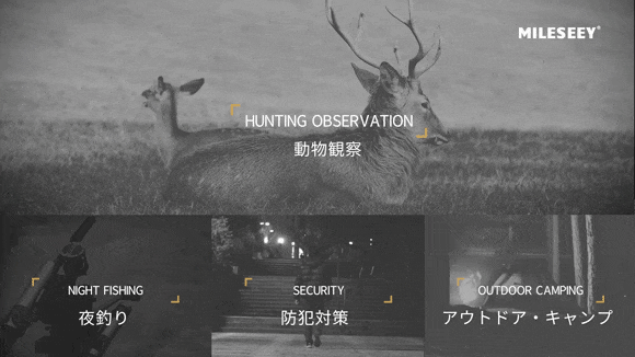 小型軽量で携帯に便利で、動物の観察、スポーツ観戦、ライブ会場、畑の監視、狩猟、釣り、獣害対策やキャンプなど様々な場合に活躍します。