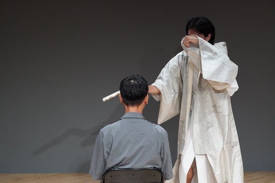敷地理(振付家、ダンサー)新作に向けたリサーチを京都と横浜で進めました。京都では能や日本舞踊のトレーニングプログラムに参加し、横浜では毎日複数のゲストを迎えながらリサーチとクリエーションを展開。能に見られる「遅延した声と身振り」等に着目し、特に『井筒』に表れる捻れたジェンダー性に関心を寄せました。プレゼンテーションでは、リサーチの成果を共有しつつ、能や日本舞踊の要素とLap Danceを組み合わせた新作の手がかりを探りました。