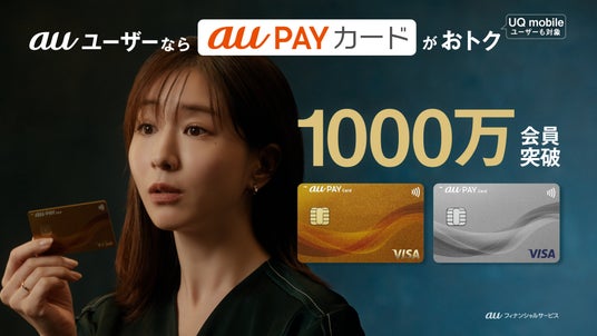 「1,000万会員突破篇」では「au PAY カード」が1,000万会員突破したことを聞き、「おトクに取り残されている?」という気付きの表情をします。本CMを通して「auユーザーなら、au PAY カードがおトク」というメッセージを伝えています。