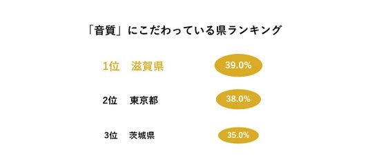 《「音質」を最も重視している都道府県1位は「滋賀県」。滋賀県の人は「音楽鑑賞を趣味」とする人が多く音へのこだわりが強い傾向に》
