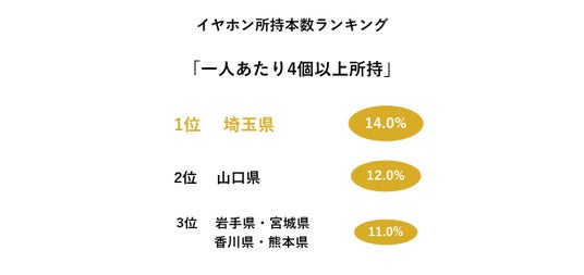 ■イヤホンを4個以上所有している人が最も多いのは「埼玉県」