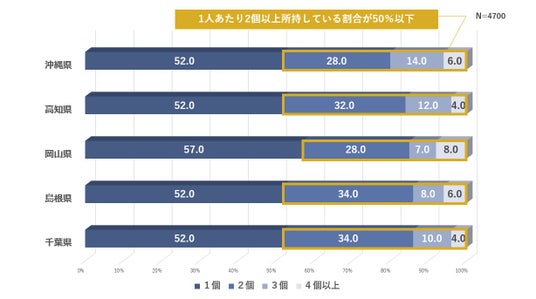 さらに、47都道府県中42の都道府県で2人に1人が「イヤホンを2個以上所有」していることが明らかに。