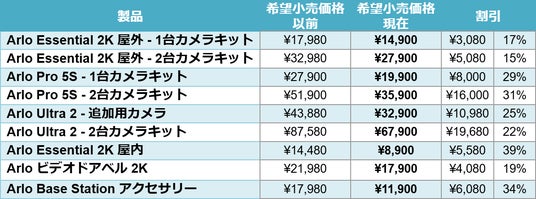 ARLO TECHNOLOGIES、セキュリティ製品の価格改定を発表