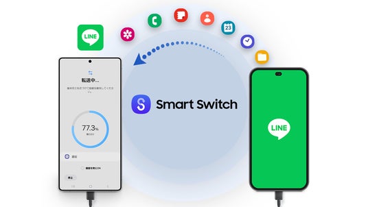 iOSからでもSamsung Galaxyのデータ移行アプリ「Smart Switch※1」を使えば、かんたんに機種変更時のデータ移行が可能です。LINEのトーク履歴も「全期間」の移行が「Smart Switch」で可能※2になりました。Samsung Galaxyなら買ったその日から、今まで通りの使い心地でご使用いただけます。