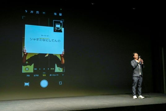 坪谷様がご降壇後、小米技術日本株式会社 プロダクトプランニング本部 本部長 安達 晃彦が登場し、注目製品の一つである「Xiaomi 15 Ultra」に関するプレゼンテーションを行いました。最大の特長としては、「1/1.4インチの大型イメージセンサーで多くの光を取り込む、ライカ共同開発の2億画素の望遠カメラを搭載しているが特長です。」と語りました。また、プレゼンテーション中ではXiaomi 15 Ultraに搭載されている望遠機能を使い、約20m先の会場後方実際に撮影し、高精細ズームを披露すると、会場は大きな盛り上がりを見せました。