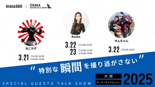 360度カメラ世界シェアトップを誇るInsta360Japan株式会社(日本本社:東京都中央区、以下Insta360)は、2025年3月21日(金)~ 23日(日)に開催する、「大阪モーターサルショー2025」に出展いたします。