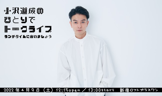 2022年2月、本多劇場での小沢道成ひとり芝居『鶴かもしれない2022』を成し遂げたばかり、また虚構の劇団 活動休止公演『日本人のへそ』への出演が発表され、話題を呼ぶ俳優・小沢道成が、4月9日に新宿・LOFT/PLUS ONEにてトークライブを開催する。