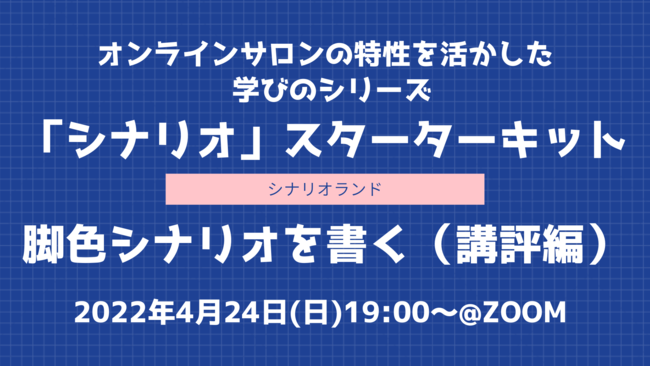 ◆4/24(日)「シナリオ」スターターキット 「脚色シナリオを書く(講評編)」開催!