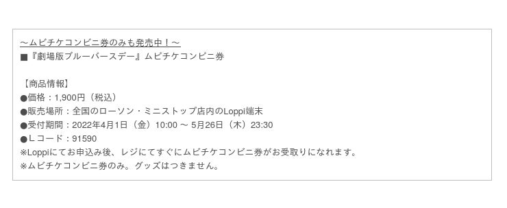 ※グッズ付きムビチケコンビニ券はWebではご購入いただけません。全国のローソン店内のLoppi端末のみのお取扱いとなります。