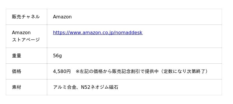 Amazonストア:https://www.amazon.co.jp/nomaddesk