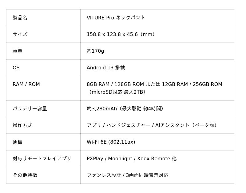 ・公式ストア:https://www.viture.jp/product/viture-pro-neckband