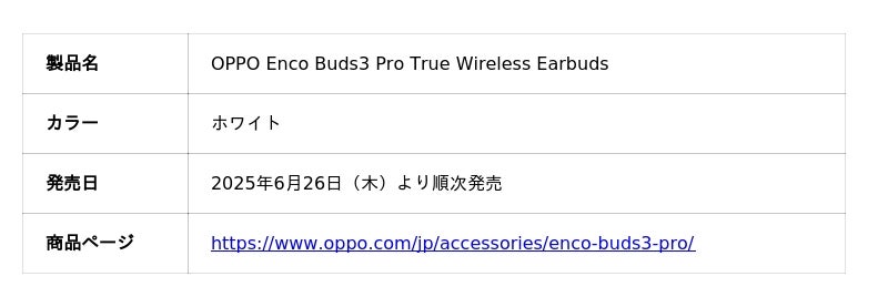 革新的なデザインとテクノロジーで業界をリードするスマートデバイスブランドOPPOは、完全ワイヤレスイヤホン「OPPO Enco Buds3 Pro True Wireless Earbuds(オッポ アンコー バッズスリー プロ トゥルー ワイヤレス イヤーバッズ)」の予約受付を6月19日(木)13時より開始し、6月26日(木)より販売開始いたします。