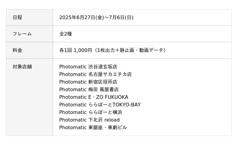 キタムラ・ホールディングス グループのピックハイブ株式会社(本社:東京都新宿区、代表取締役社長兼COO:大迫 由典)が運営するセルフフォトブース「Photomatic」で、2025年6月27日(金)〜7月6日(日)の間、「イルジメ」「悪の花」などで日本でも大人気の俳優イ・ジュンギ氏のスペシャルフレームが期間限定で登場します。