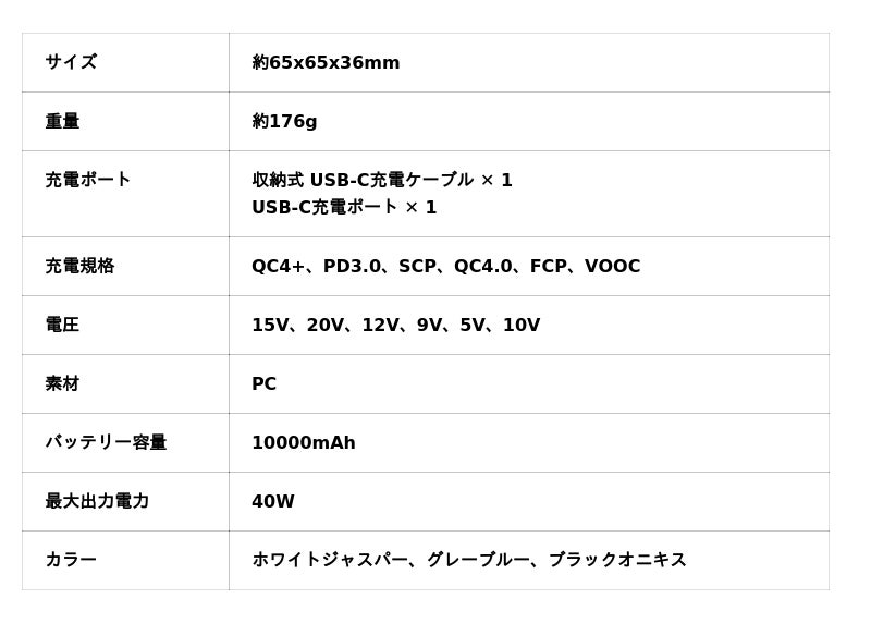 40Wの急速充電に対応した高性能なUSB-Cモバイルバッテリーでありながら、
