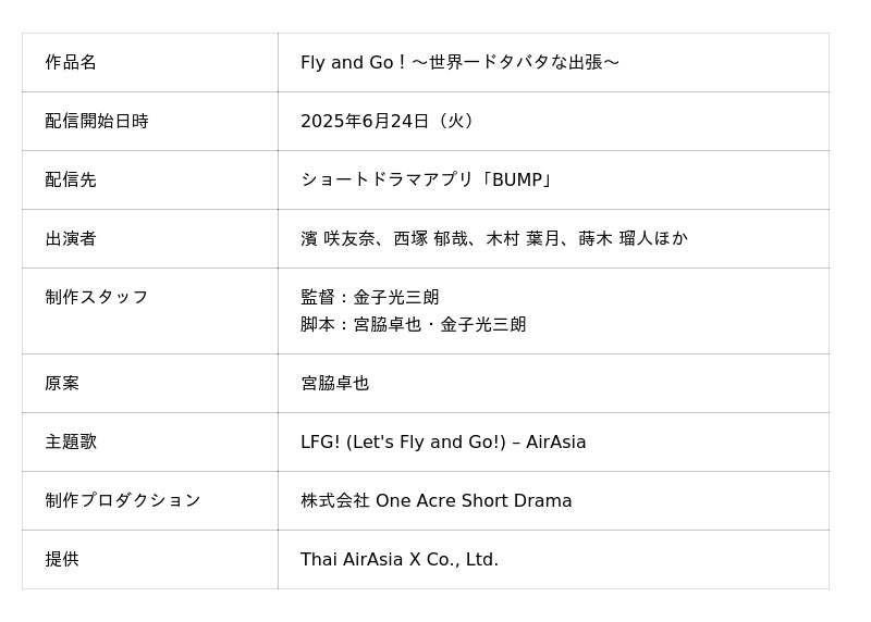 エアアジアの就航都市を巡るショートドラマ『Fly and Go!〜世界一ドタバタな出張〜』、ショートドラマアプリ「BUMP」で6月24日(火)から配信開始!