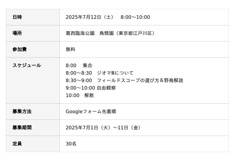 スマートフォンで野鳥撮影に挑戦。フィールドスコープ「ジオマIII」シリーズを7月10日(木)に発売。発売を記念し、体験会も実施いたします。