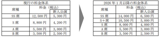 (1)2026年1月以降の料金体系(座席区分・席種・料金)について(新座席表は別添のとおり)