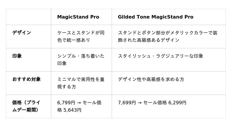 「Gilded Tone MagicStand Pro」 と 「MagicStand Pro」 の違いと共通点