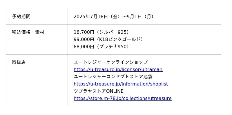 株式会社ユートレジャー(本社:東京都新宿区、代表取締役社長:青木 興一、株式会社ケイ・ウノの連結子会社)は、「ウルトラマンシリーズ」に登場する人気キャラクター「ウルトラマンゼロ」と「ウルトラマンゼット」をモチーフにした「リバーシブルネックレス」の予約受付を2025年7月18日(金)〜9月1日(月)の期間、ユートレジャーオンラインショップ、ユートレジャーコンセプトストア池袋、ツブラヤストアONLINEにて行います。
