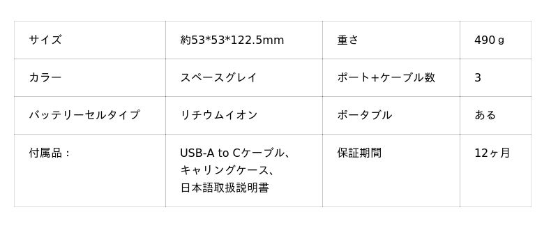片手で持てるサイズに設計され、カバンやバッグに収納するのも容易で、持ち運びの負担を抑えつつ、必要な時に確実に電力を供給してくれます。