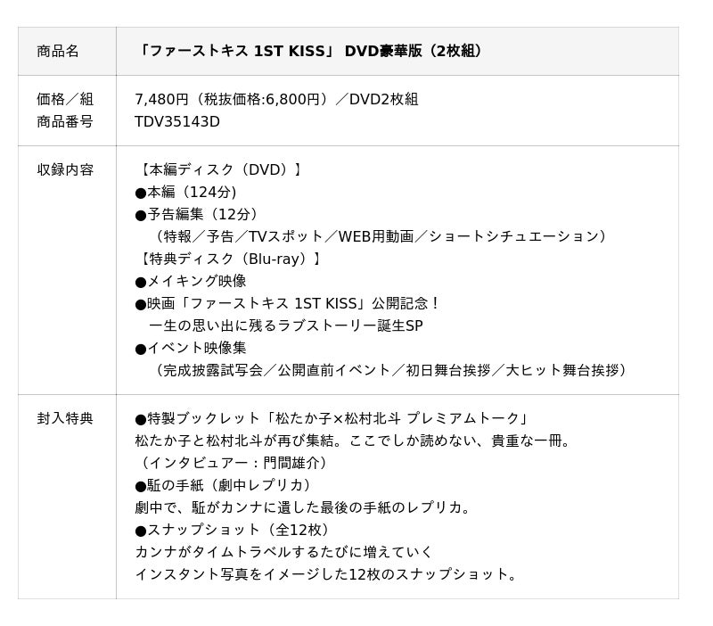 『ファーストキス 1ST KISS』Blu-ray&DVD豪華版には特製ブックレット、駈の手紙(レプリカ)やスナップショットを封入!イベント映像集など映像特典も満載!