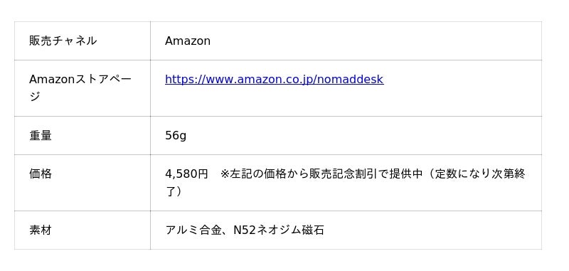 Amazonストア: https://www.amazon.co.jp/nomaddesk