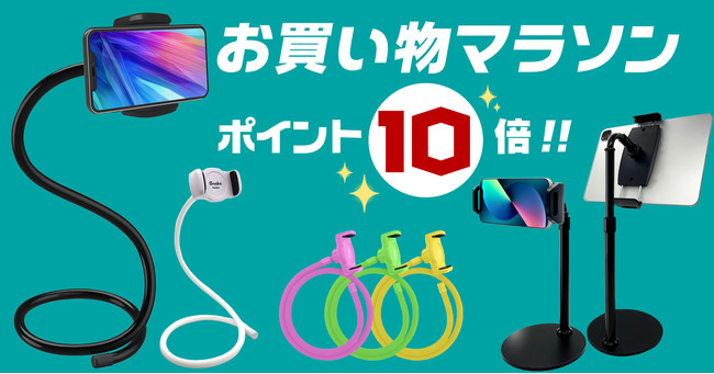 「HIFUMI 楽天市場店」は、2022年4月9日(土)20:00〜4月16日(土)01:59まで開催される楽天市場「お買い物マラソン」に参加します。 開催中は、寝ながらスマホが楽になる万能スマホアームホルダー「SnakeHolder」と、高さも角度も自由自在で安定性の高い「伸縮スマホ&タブレットスタンド」の2商品が、ポイント10倍に!どちらもリアルタイムランキング1位を獲得している実力派です。 この機会に、新生活やリモートワークにも役立つツールを導入してみてはいかがでしょうか。