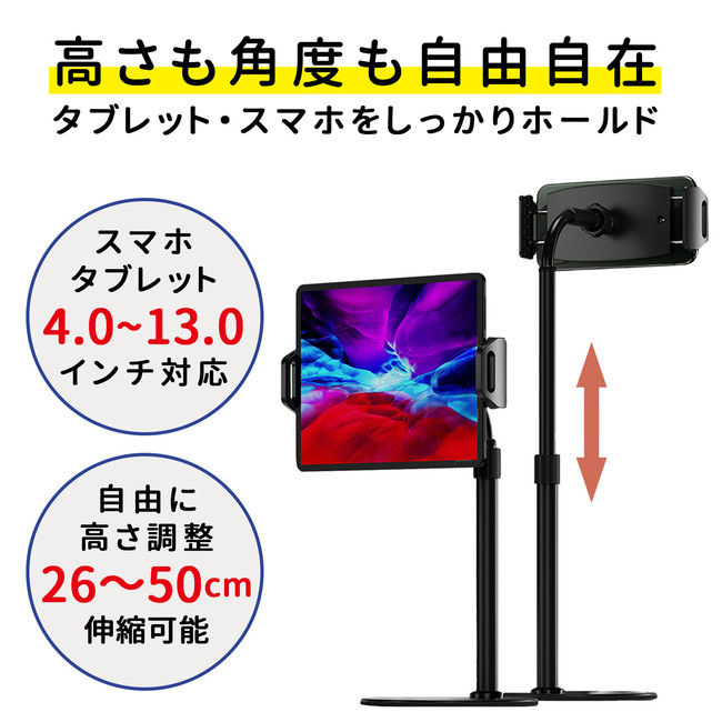 ・スタンドは26〜50cmまで伸縮可能。用途に合わせて自由に高さ調整ができます。