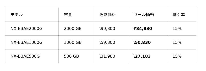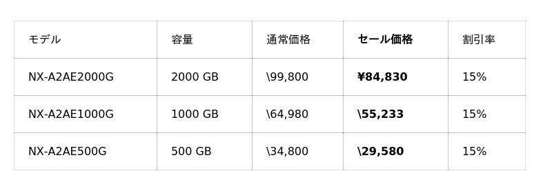 Amazon Nextorage公式ストア セール対象商品ページ(Imaging)▶