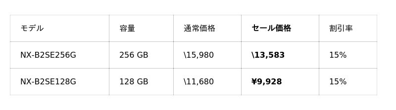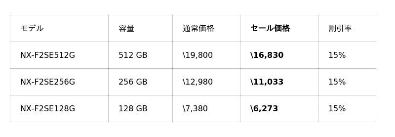 今回のセールでは、CFexpress 4.0 Type Bメモリーカード「NX-B3SEシリーズ」や、CFexpress 4.0 Type Aメモリーカード「NX-A2SEシリーズ」がお求めやすい価格となっております。両シリーズとも静止画から4K/8Kなどの高画質動画撮影までマルチにお使いいただくことができ、CFexpress 4.0対応のCFexpress Type B用カードリーダー「NX-SB1PRO」、またはCFexpress Type A用カードリーダー「NX-SA1PRO」との組み合わせで、高速なデータ転送が可能になります。撮影後のワークフローを効率化させるためにも、セットでご使用いただくのがおすすめです。