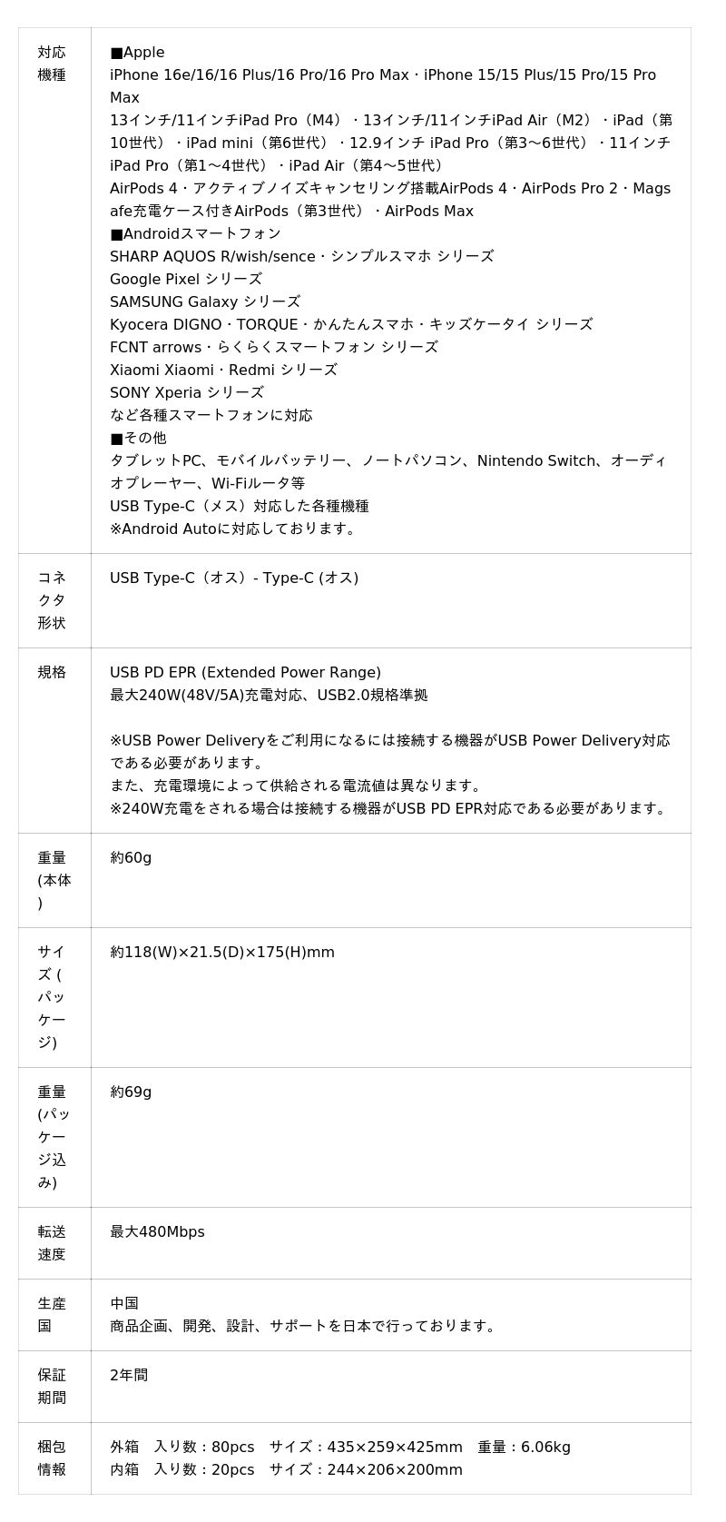 ▼PD240W急速充電に対応(USB-C to USB-Cのみ)