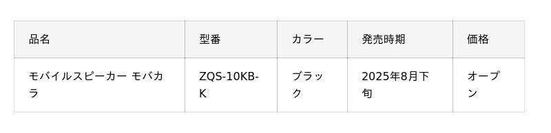 株式会社電響社(大阪市浪速区、代表取締役社長:山下 俊治)は、ZEPEAL(ゼピール)ブランドからワイヤレスマイク2本付きのカラオケ・音楽再生・拡声ができる携帯型スピーカー「モバイルスピーカー モバカラ ZQS-10KB-K」を、2025年8月下旬より発売いたします。