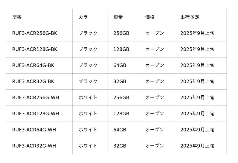 スマホ・PCどっちでも使えるUSBメモリー「RUF3-ACRシリーズ」を9月上旬より発売
