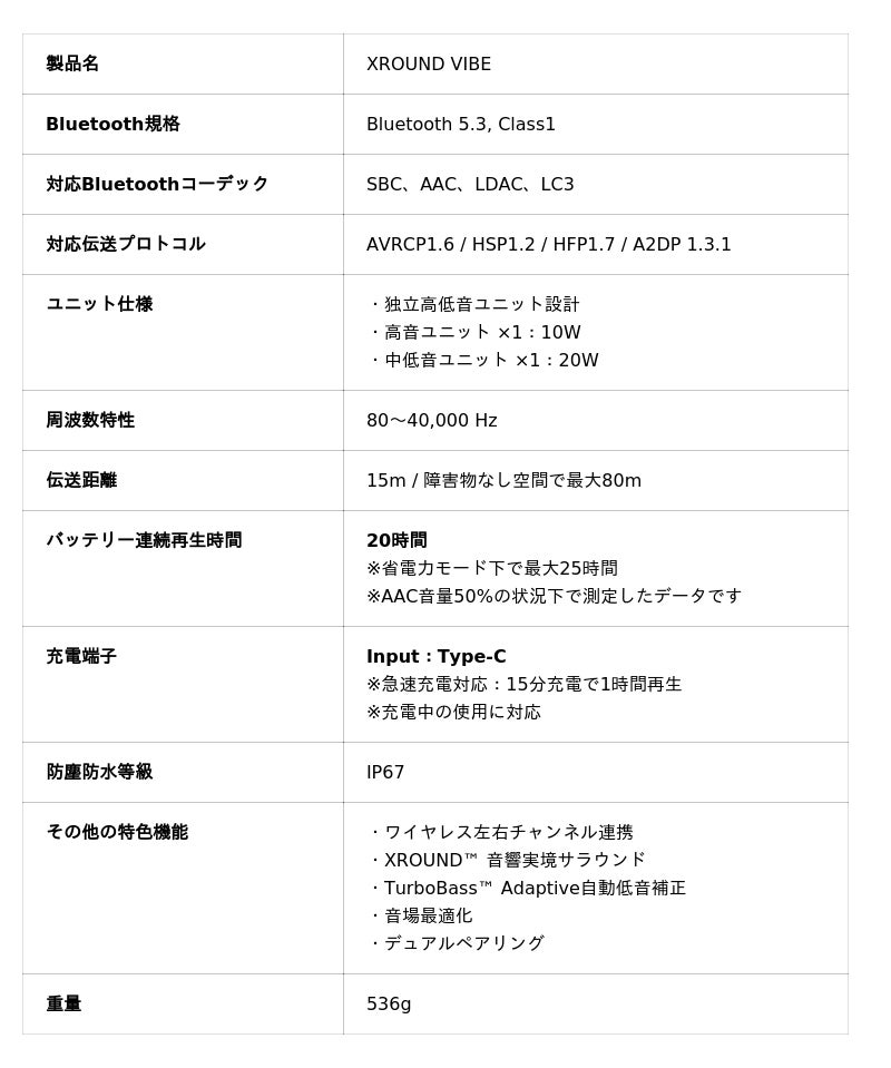 ※通常の音楽鑑賞や動画視聴であれば、XROUND VIBE本体のみで快適にご使用いただけます。Bluetooth接続時の遅延は平均120〜200msと十分に低く、日常用途ではほとんど気になりません。