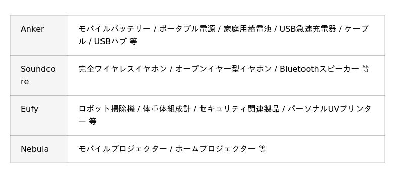 - Anker、Soundcore、Eufy、NebulaおよびAnker Solixは、アンカー・ジャパン株式会社またはその関連会社の商標または登録商標です。