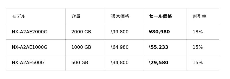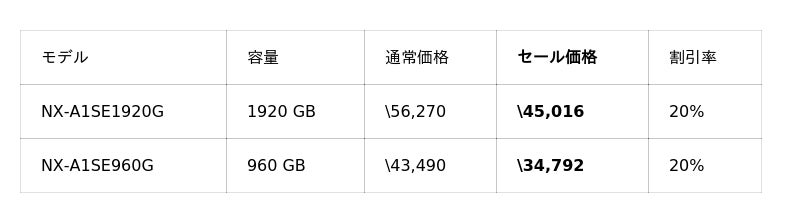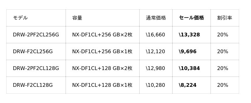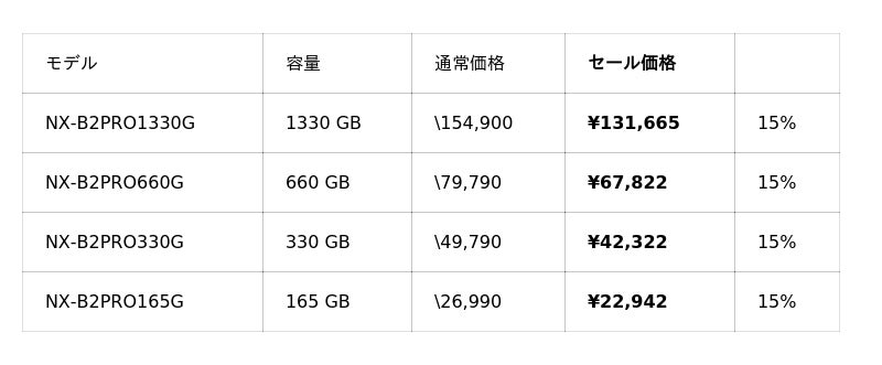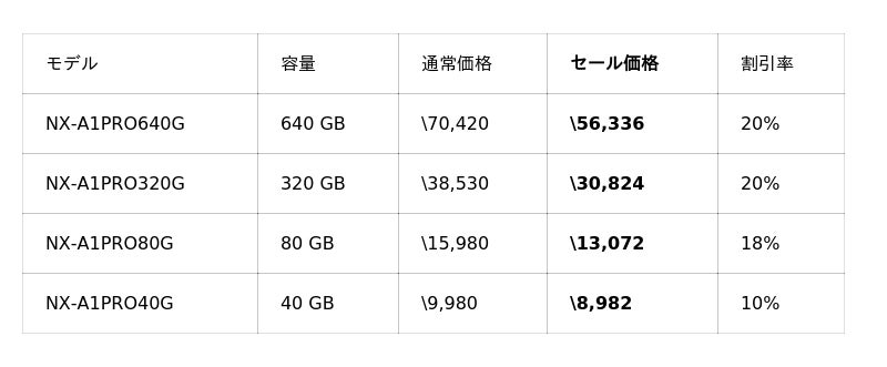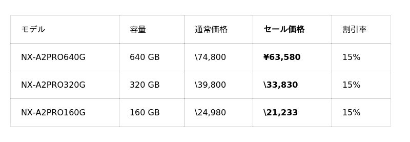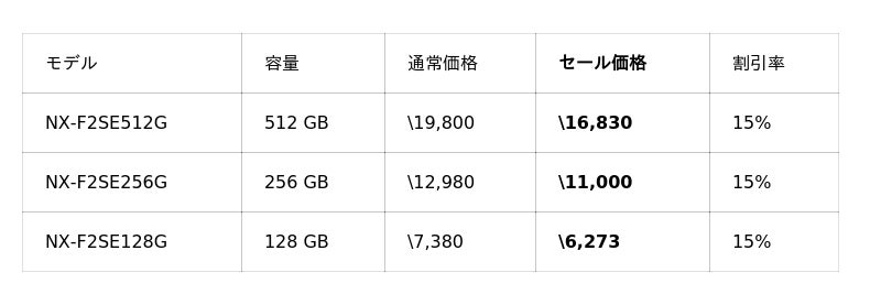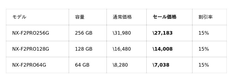 また、ご好評いただいている「NX-F2PROシリーズ」、「NX-F2SEシリーズ」が15%OFFと、UHS-II対応のSDカードも大変お求めやすい価格となっております。