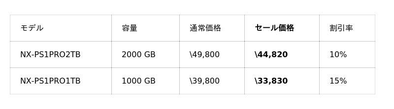 Amazon Nextorage公式ストア セール対象商品ページ(Imaging)