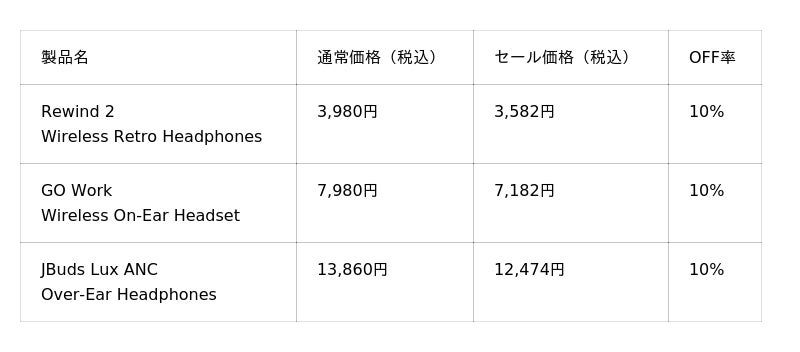 2024年度に100ドル以下のスポーツイヤホンと50ドル以下のワイヤレスイヤホンのカテゴリーで全米売上No.1(※1)を獲得した「JLab」の日本法人、JLab Japan株式会社(本社:東京都港区、代表取締役:横張 亮輔)は、2025年8月29日(金)9:00〜2025年9月4日(木)23:59までAmazonで開催される「AmazonスマイルSALE」にて、話題の「イヤーカフ型ワイヤレスイヤホン」をはじめとした、ワイヤレスイヤホン・ヘッドホン等、注目の17製品を最大20%OFFで販売いたします。