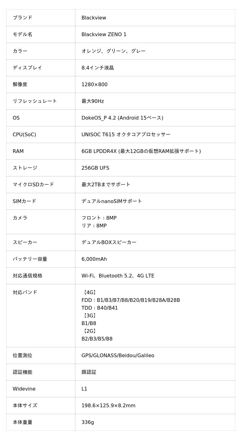 Blackview ZENO 1のスペック&仕様