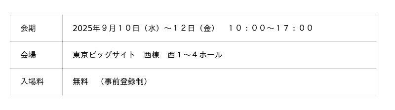ご来場の際には、事前に主催者ホームページより来場事前登録(登録無料)をお願いいたします。