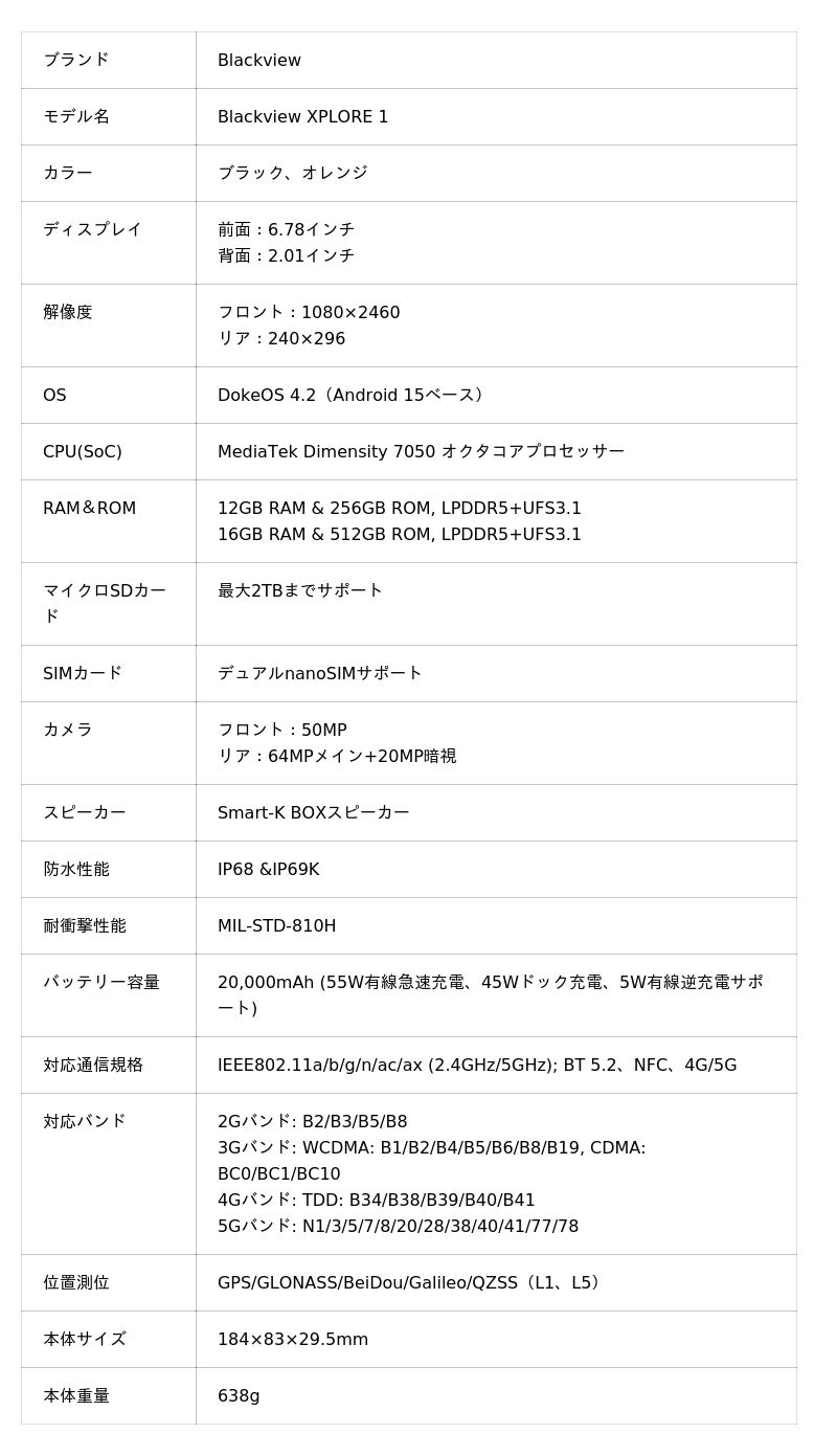 最新5GタフネスAIスマホ「Blackview XPLORE 1」登場!20,000mAh超大容量バッテリー搭載/防水防塵・耐衝撃/背面ディスプレイ搭載/Android 15/2.4K・120Hz