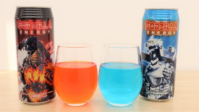 昨年5月に発売した「GODZILLA ENERGY」は、「デザインがかっこいい」「色がやばい」「元気が出そう」など、インパクトのあるパッケージデザイン、液色、成分に大きな反響をいただきました。第2弾は、2種類のパッケージデザインと新しい液色にパワーアップ!!さらに成分もパワーアップしています。