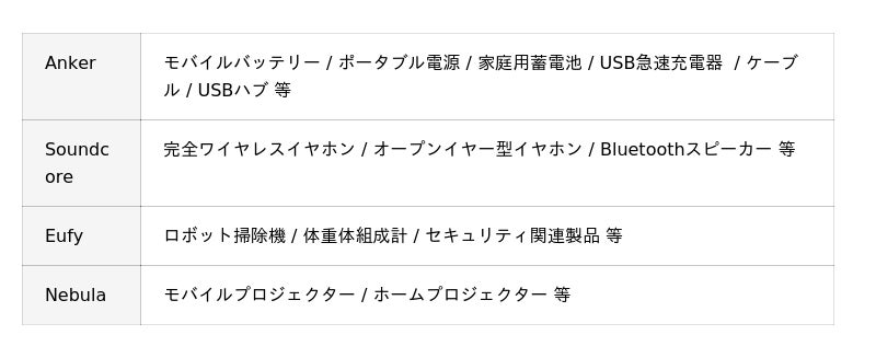 - Anker、Soundcore、Eufy、NebulaおよびAnker Solixは、アンカー・ジャパン株式会社またはその関連会社の商標または登録商標です。