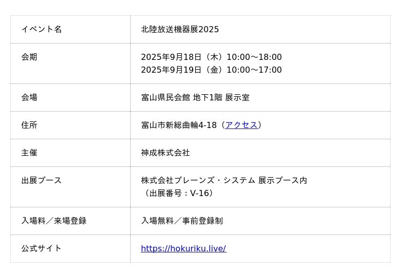 株式会社アスク(本社:東京都千代田区)は、2025年9月18日(木)・19日(金)に富山県民会館で開催される「北陸放送機器展2025」に出展いたします。