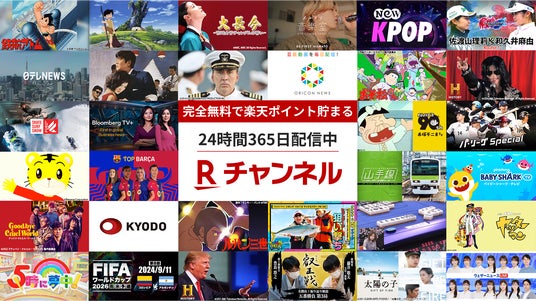 「Rチャンネル」はアニメ、映画、ドラマ、ニュース、スポーツ、エンタメ、趣味、キッズなど、幅広いジャンルの番組を、24時間・365日無料で視聴できるリニア型動画配信サービスです。リニア型動画配信サービスとして日本最大級の50チャンネル(注5)にわたって配信しており、好きな時に視聴できる見逃し配信にも対応しています。さらに、視聴時間1時間ごとに「楽天ポイント」1ポイントの進呈に加えて、毎月の総視聴時間の順位に応じたポイントも進呈しています(注6)。
