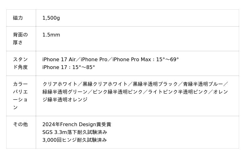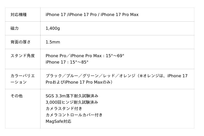 対応モデル:iPhone 17シリーズ(iPhone 17/Air/Pro/Pro Max)